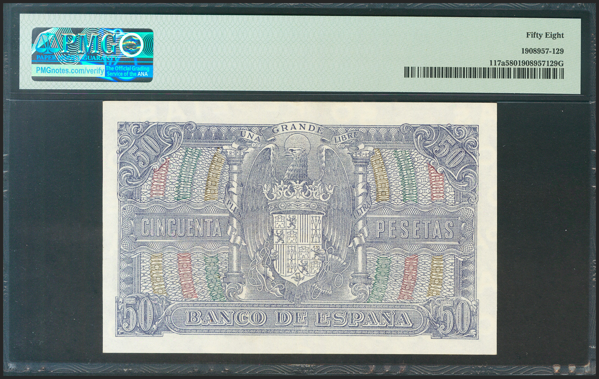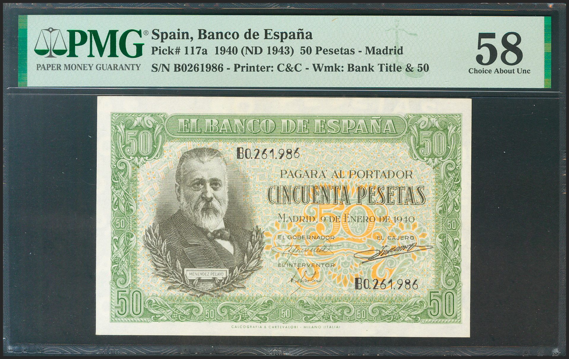 50 Pesetas. 9 de Enero de 1940. Serie B. (Edifil 2021: 437a, Pick: 117a). EBC++. Encapsulado PMG58.