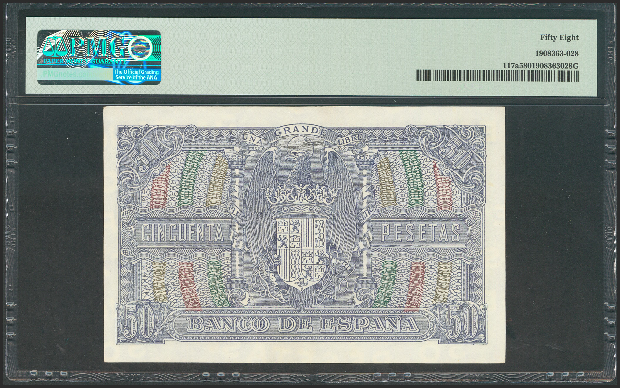 50 Pesetas. 9 de Enero de 1940. Serie C. (Edifil 2017: 437a). EBC+. Encapsulado PMG58.