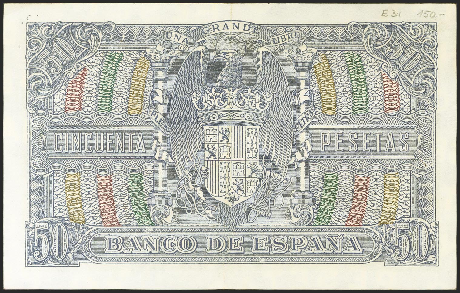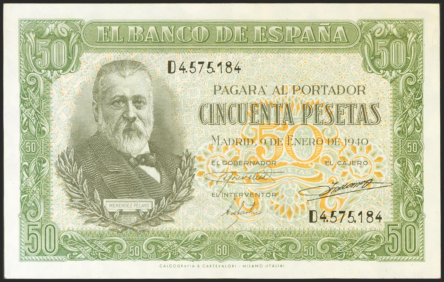 50 Pesetas. 9 de Enero de 1940. Serie D. (Edifil 2021: 437a). Conserva gran parte del apresto original. EBC.