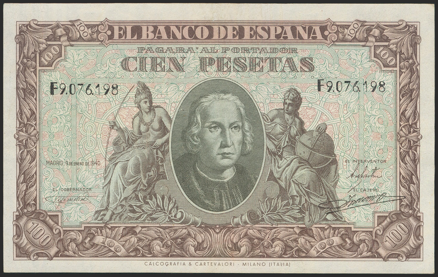 100 Pesetas. 9 de Enero de 1940. Serie F. (Edifil 2021: 438a). Conserva gran parte del apresto original. EBC+.