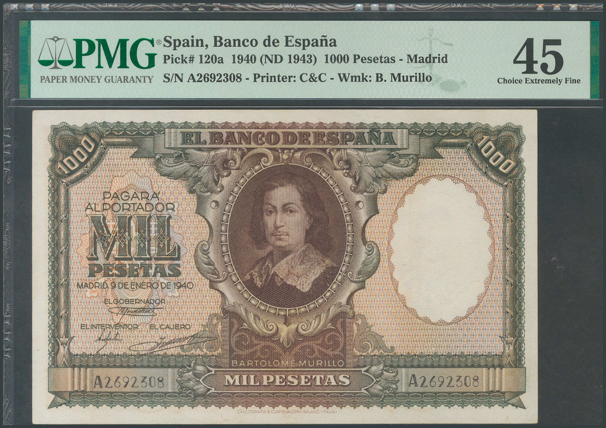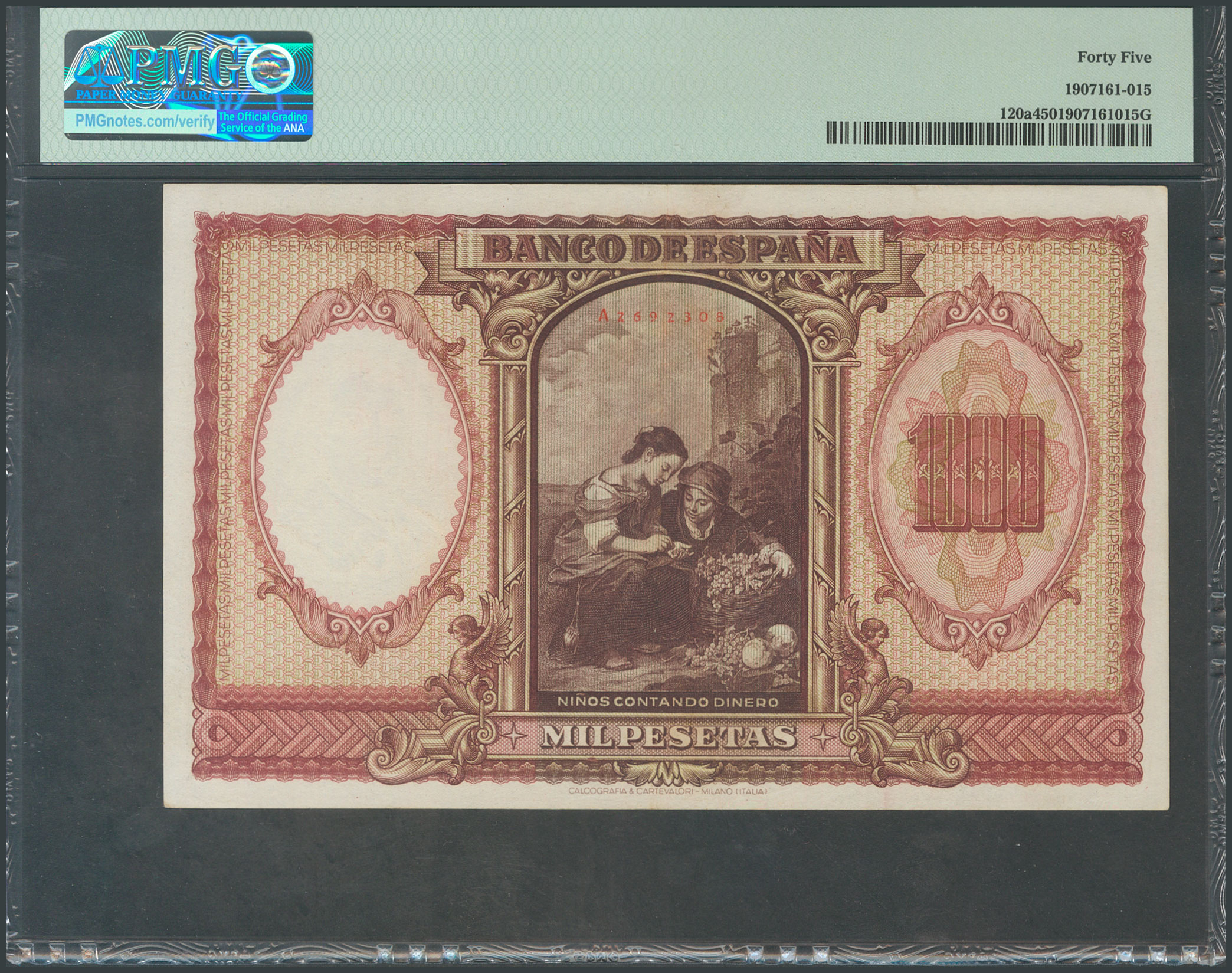 1000 Pesetas. 9 de Enero de 1940. Serie A. (Edifil 2017: 440). EBC+. Encapsulado PMG45.