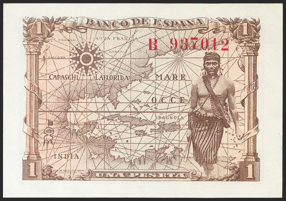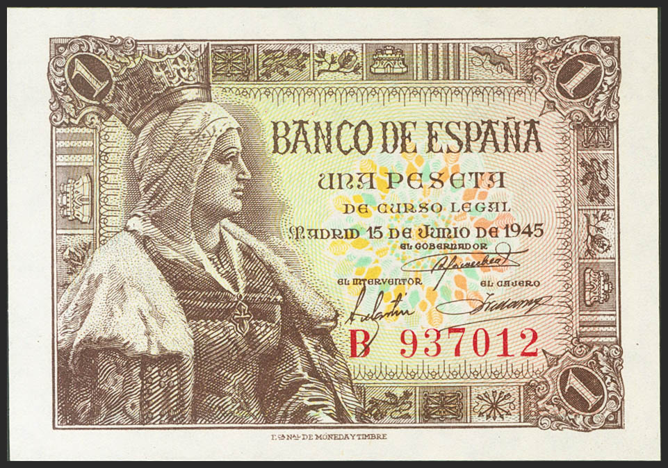 1 Peseta. 15 de Junio de 1945. Serie B. (Edifil 2021: 448a). Apresto original. SC.