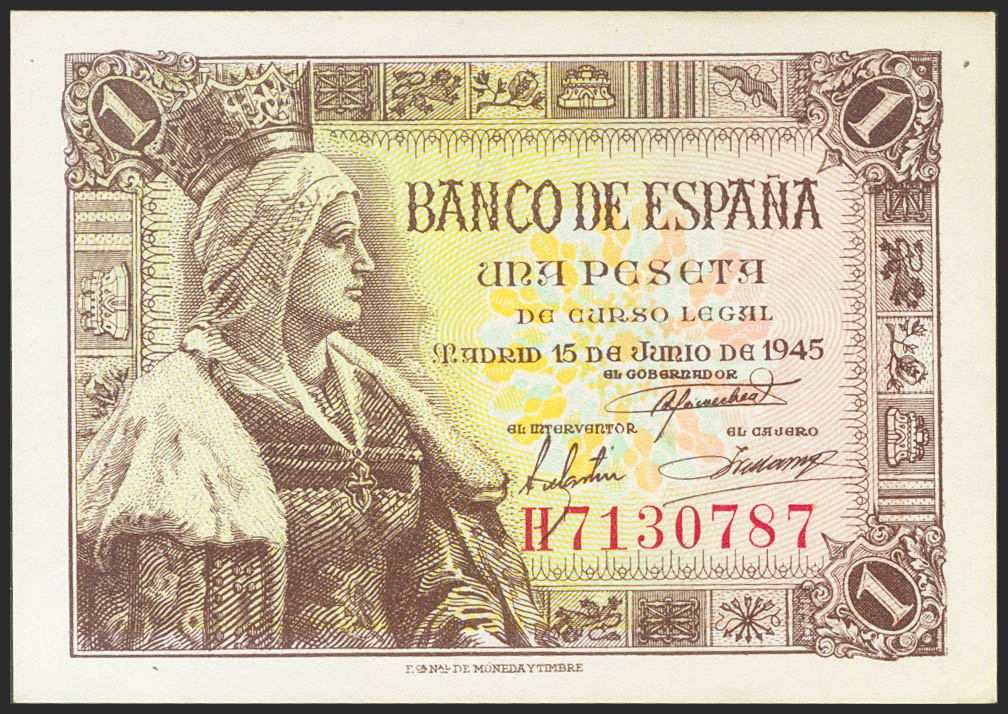 1 Peseta. 15 de Junio de 1945. Serie H. (Edifil 2021: 448a). Apresto original. SC-.