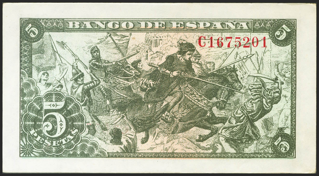 5 Pesetas. 15 de Junio de 1945. Serie C. (Edifil 2021: 449a). Apresto original. SC-.