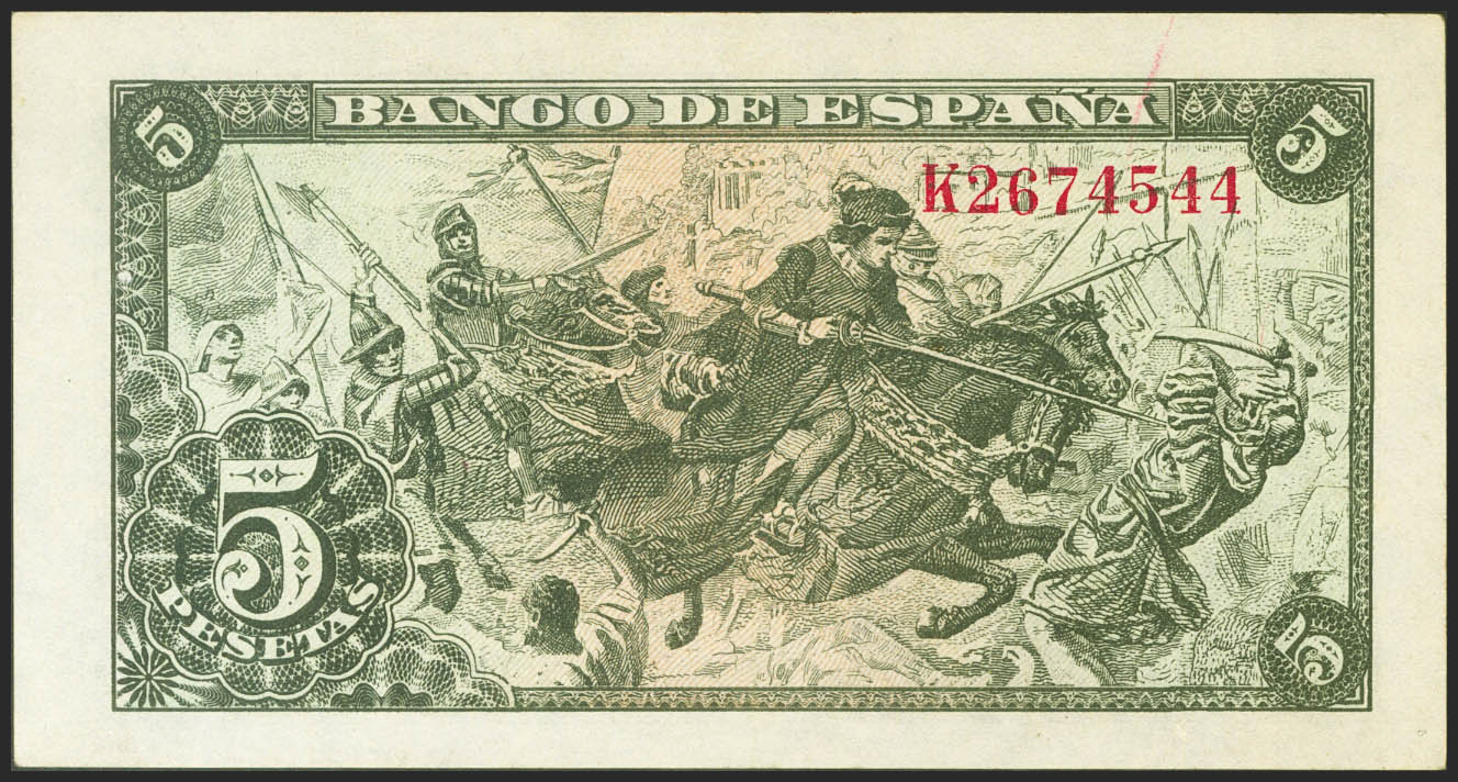 5 Pesetas. 15 de Junio de 1945. Serie K. (Edifil 2021: 449a). Apresto original. EBC++.