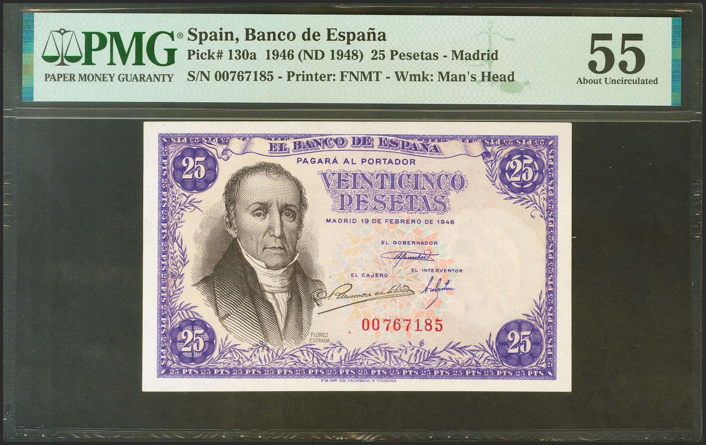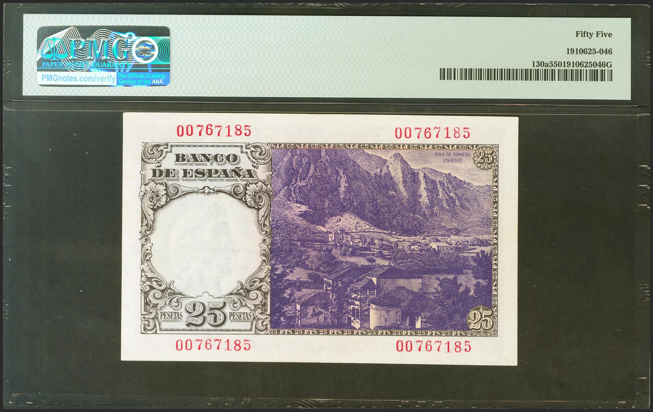 25 Pesetas. 19 de Febrero de 1946. Sin serie. (Edifil 2021: 450, Pick: 130a). EBC+. Encapsulado PMG55.
