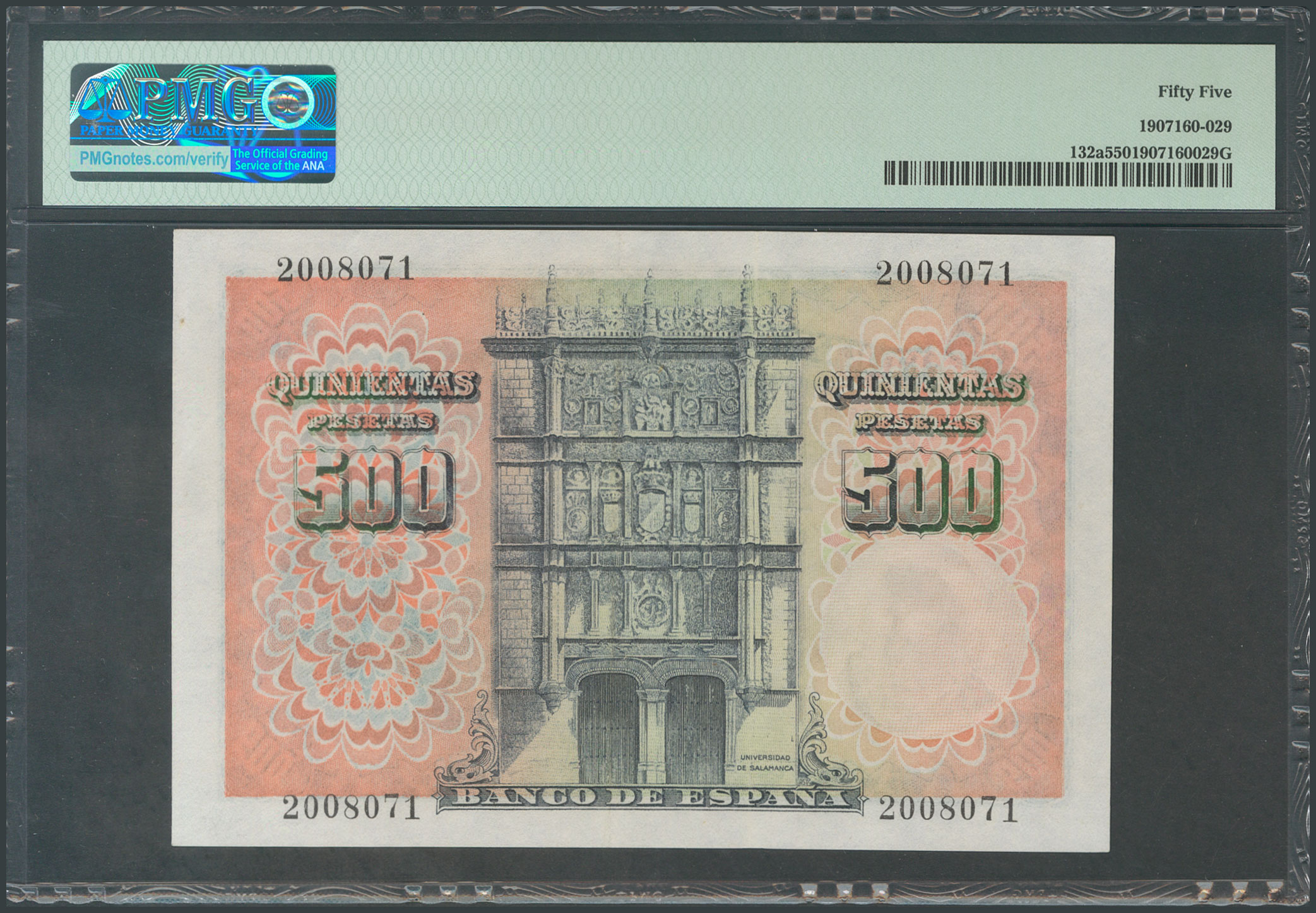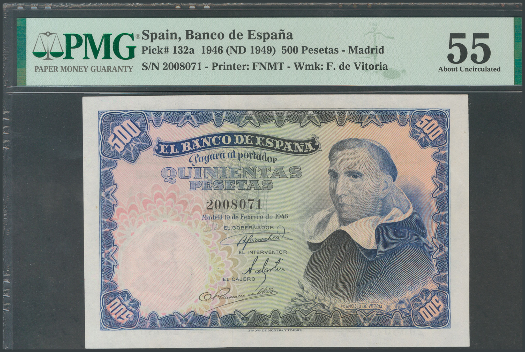 500 Pesetas. 19 de Febrero de 1946. Sin serie. (Edifil 2017: 452). Raro en esta conservación. EBC+. Encapsulado PMG55.