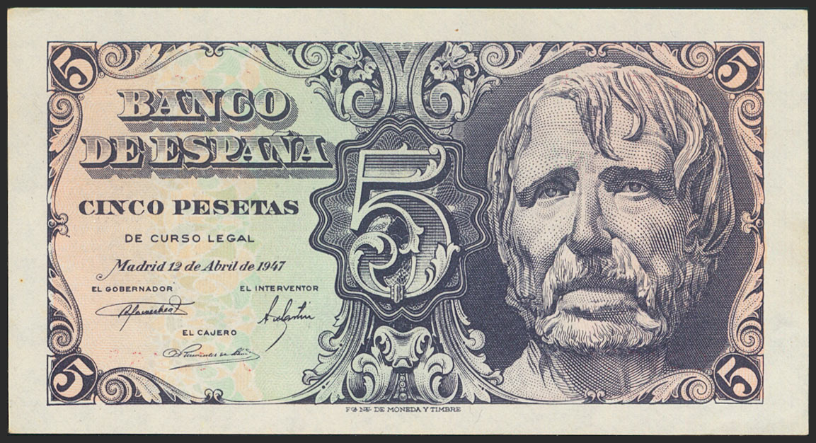5 Pesetas. 12 de Abril de 1947. Serie C. (Edifil 2021: 454a). Apresto original. SC-.