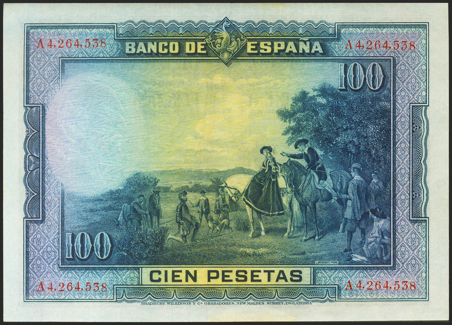 100 Pesetas. 15 de Agosto de 1928. Serie A. (Edifil 2021: 355a). Apresto original. SC-.