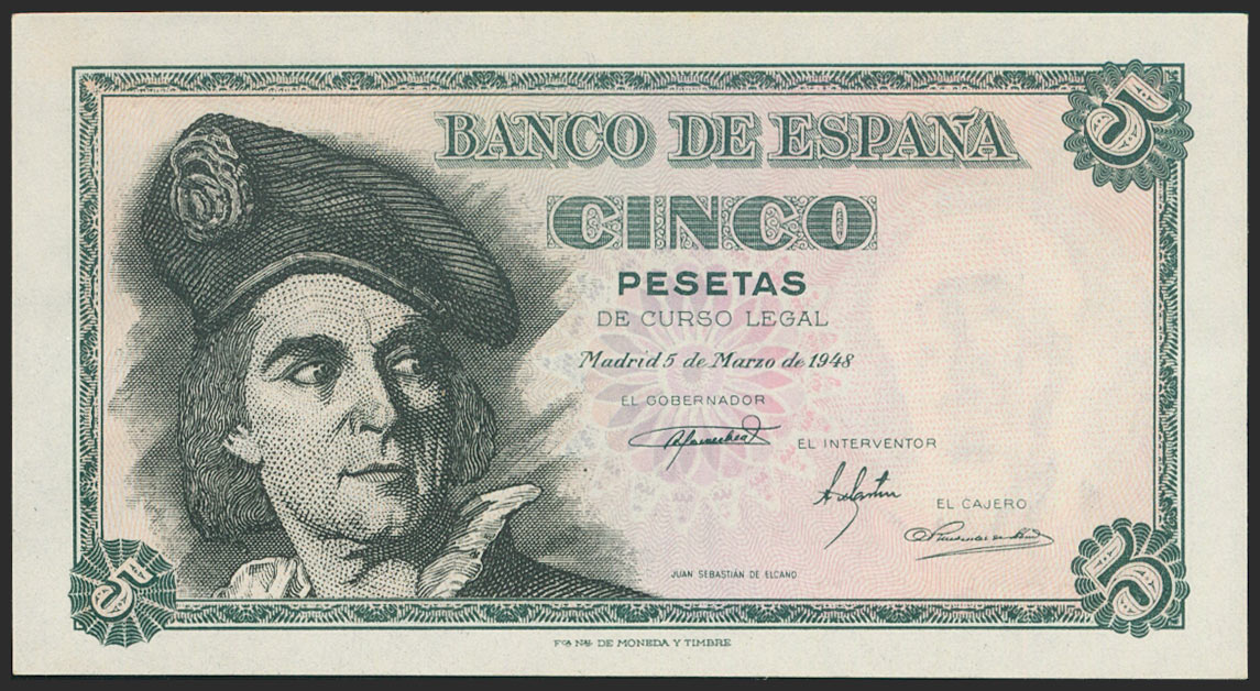 5 Pesetas. 15 de Marzo de 1948. Serie G. (Edifil 2021: 455a). Apresto original. SC-.