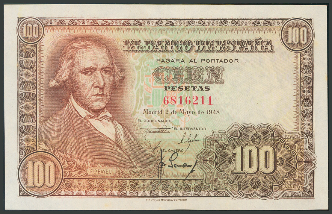 100 Pesetas. 2 de Mayo de 1948. Sin serie. (Edifil 2017: 456). EBC.