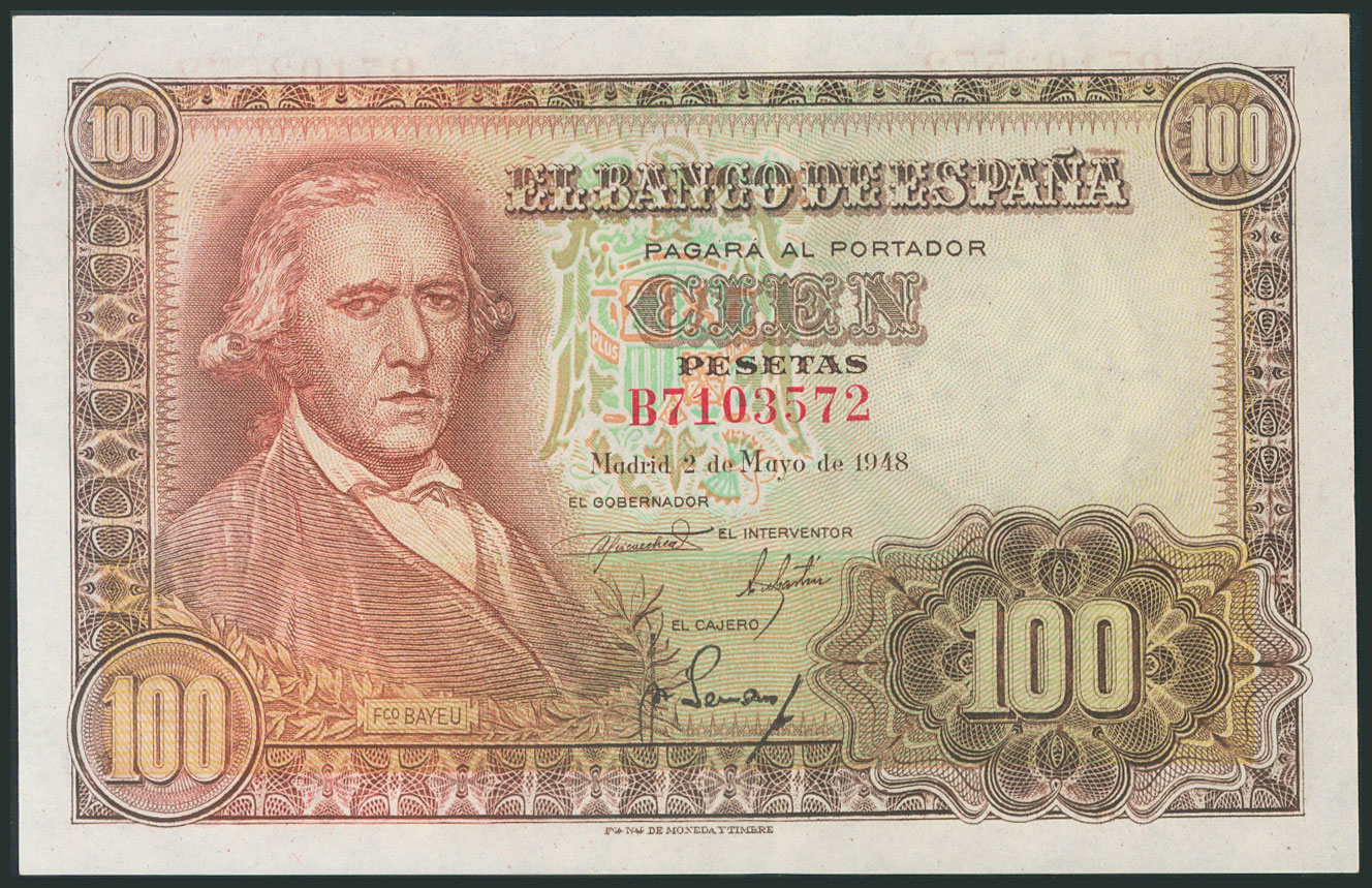 100 Pesetas. 2 de Mayo de 1948. Serie B. (Edifil 2017: 456a). EBC+.