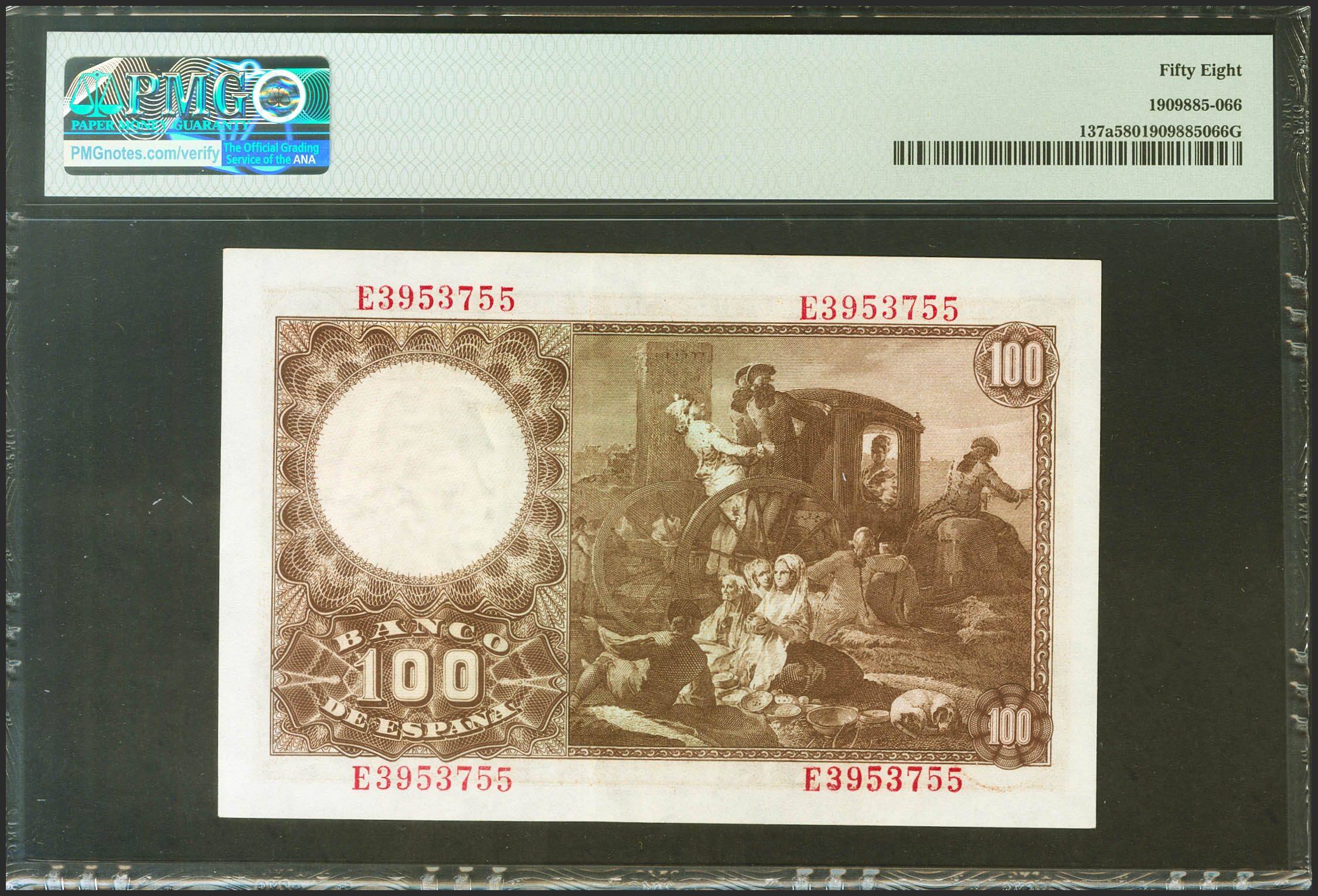 100 Pesetas. 2 de Mayo de 1948. Serie E. (Edifil 2021: 456a, Pick: 137a). EBC++. Encapsulado PMG58.