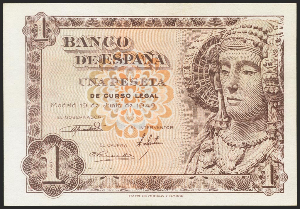 1 Peseta. 19 de Junio de 1948. Sin serie. (Edifil 2021: 457). Apresto original. SC-.