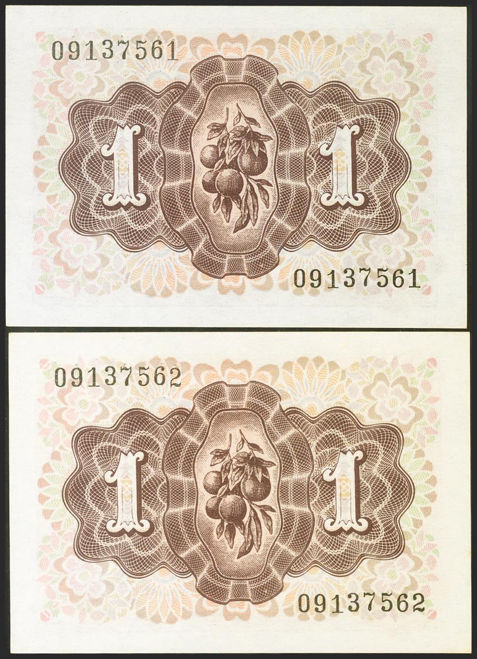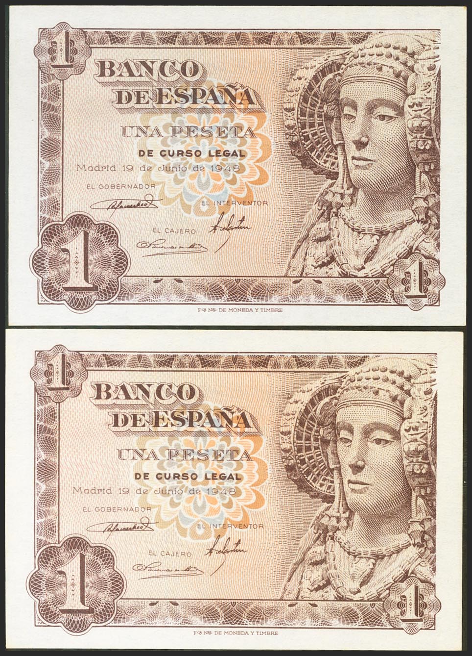 1 Peseta. 19 de Junio de 1948. Pareja correlativa. Sin serie. (Edifil 2021: 457). Apresto original. SC.
