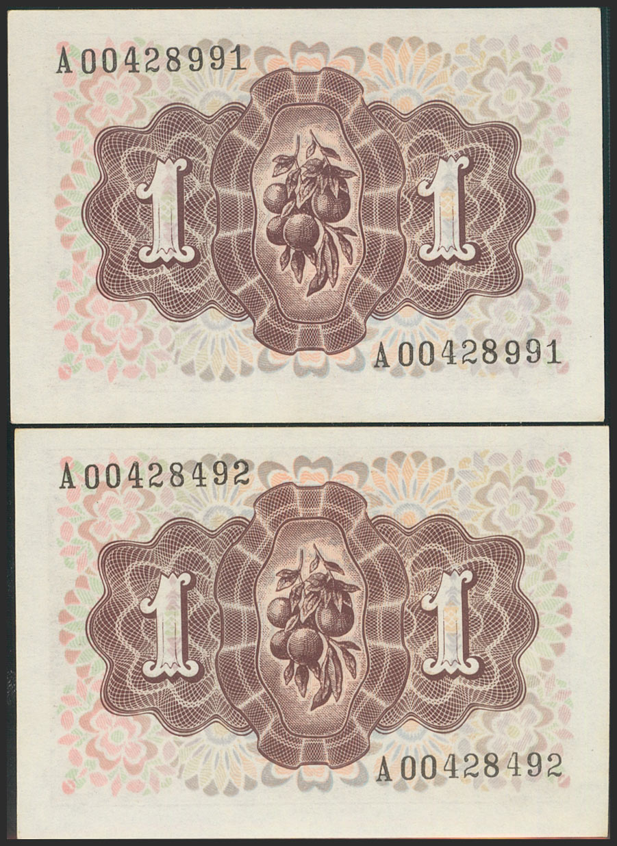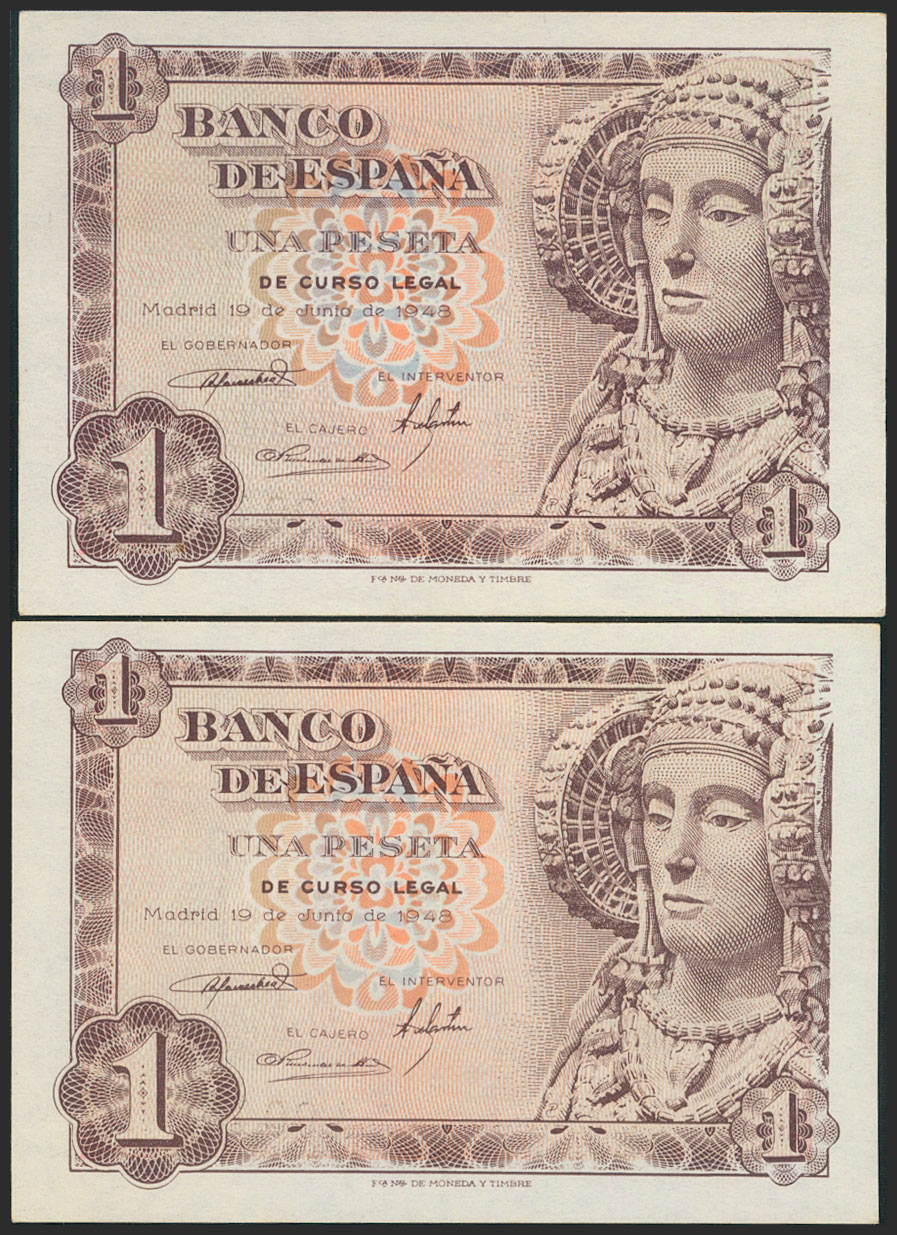 1 Peseta. 19 de Junio de 1948. Pareja correlativa. Serie A. (Edifil 2021: 457a). Apresto original. SC.