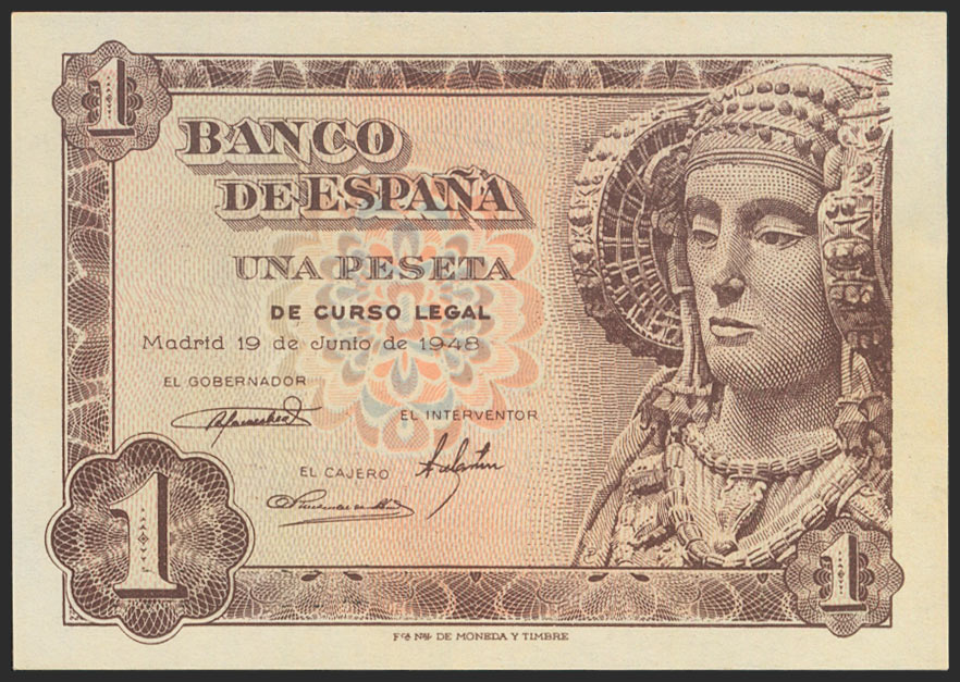 1 Peseta. 19 de Junio de 1948. Serie K. (Edifil 2021: 457a). Apresto original. SC-.