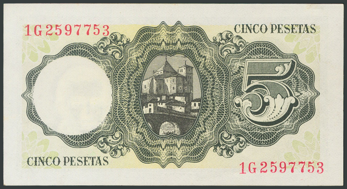5 Pesetas. 16 de Agosto de 1951. Serie 1G. (Edifil 2017: 459a). Apresto original. SC.