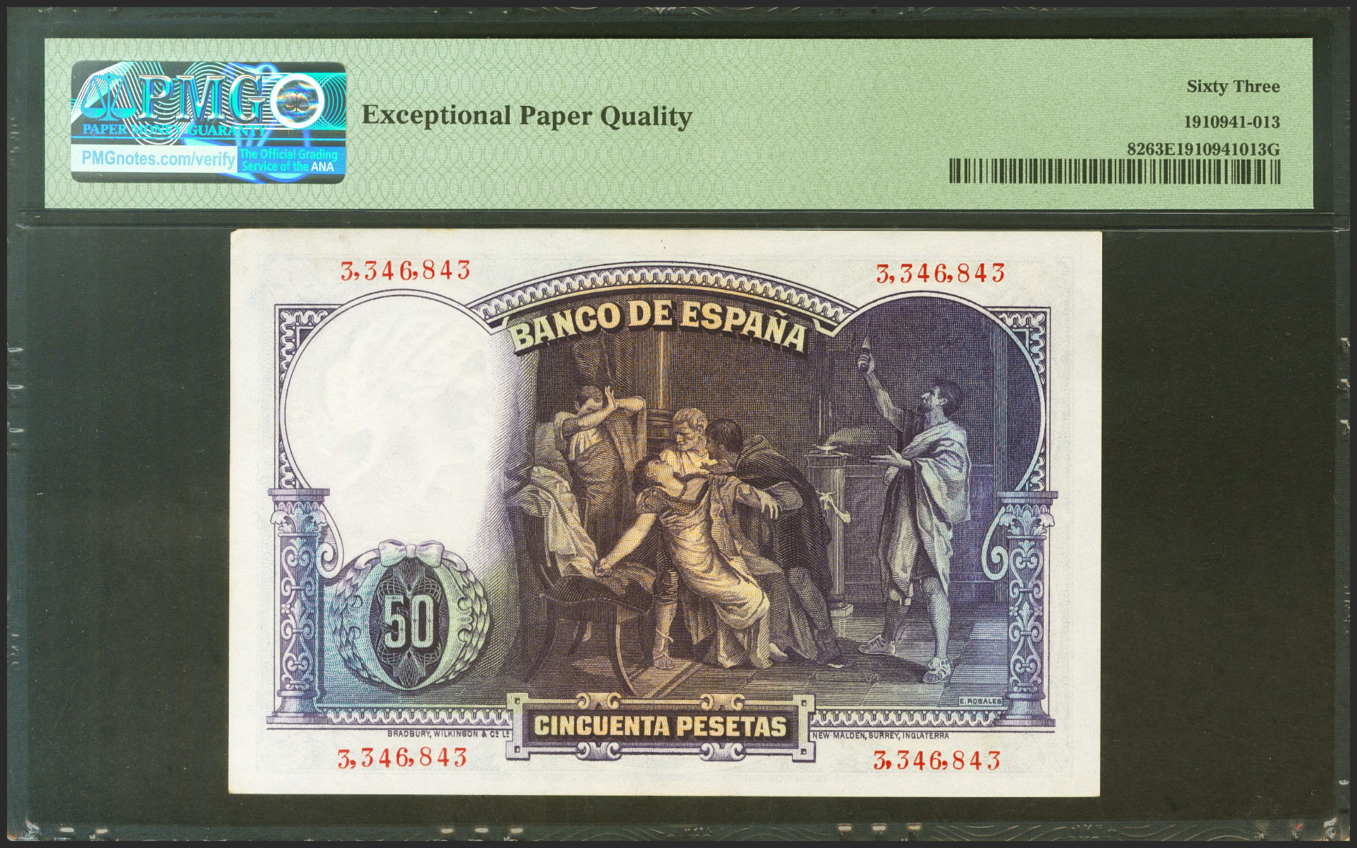 50 Pesetas. 25 de Abril de 1931. Sin serie. (Edifil 2021: 359, Pick: 82). Apresto original. SC. Encapsulado PMG63EPQ.