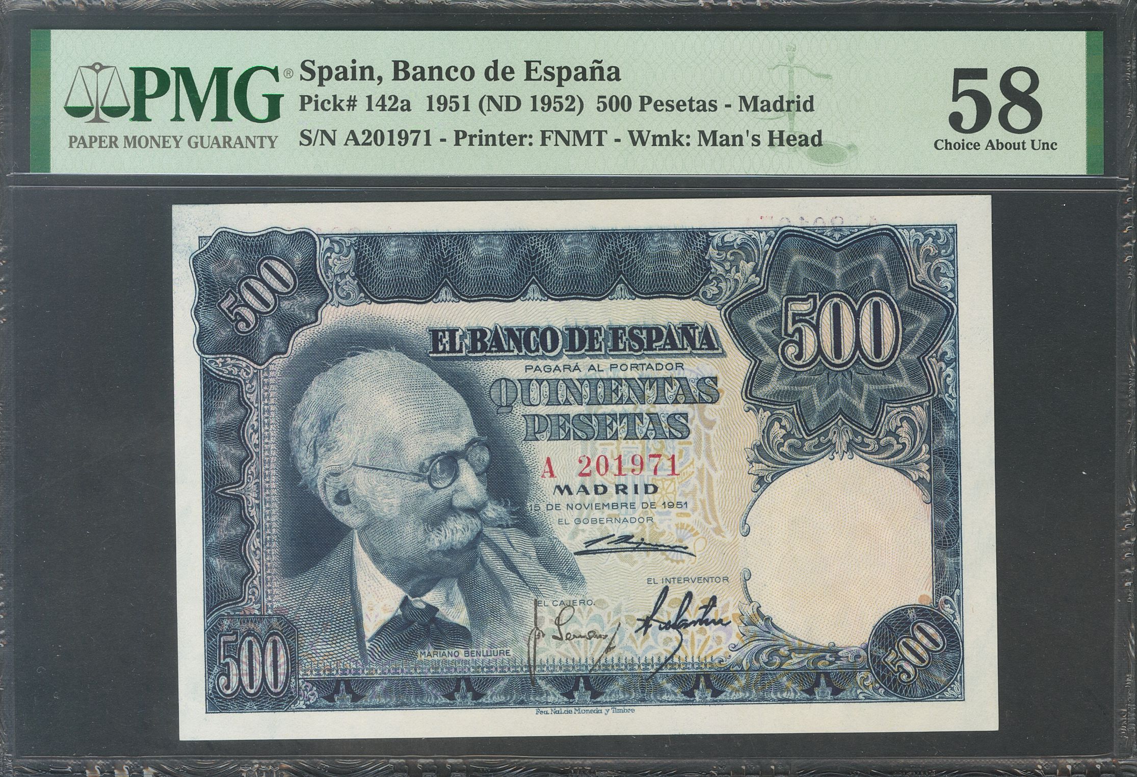 500 Pesetas. 15 de Noviembre de 1951. Serie A. (Edifil 2017: 460a). EBC+. Encapsulado PMG58.