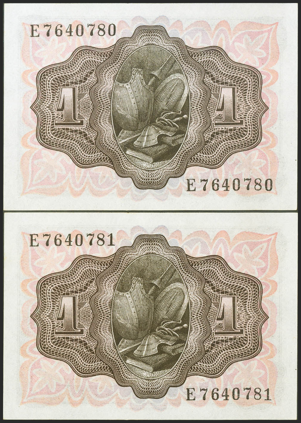 1 Peseta. 19 de Noviembre de 1951. Pareja correlativa. Serie E. (Edifil 2021: 461a). Apresto original. SC-.