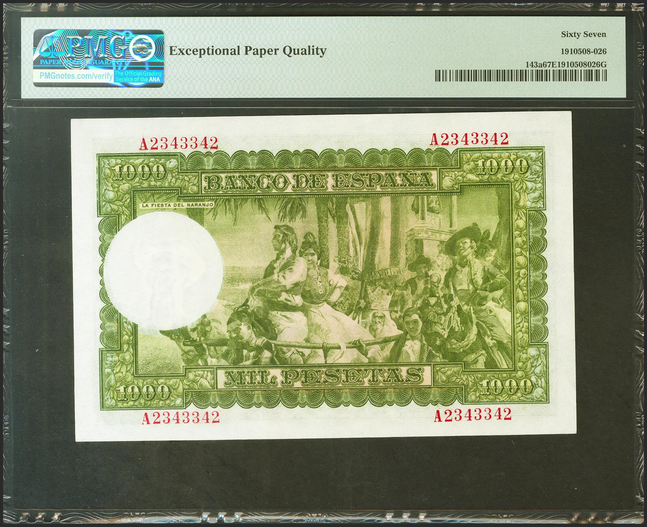 1000 Pesetas. 31 de Diciembre de 1951. Serie A. (Edifil 2021: 463a). Extraordinariamente raro en esta excepcional calidad, conserva todo su apresto original. SC. Encapsulado PMG67EPQ.