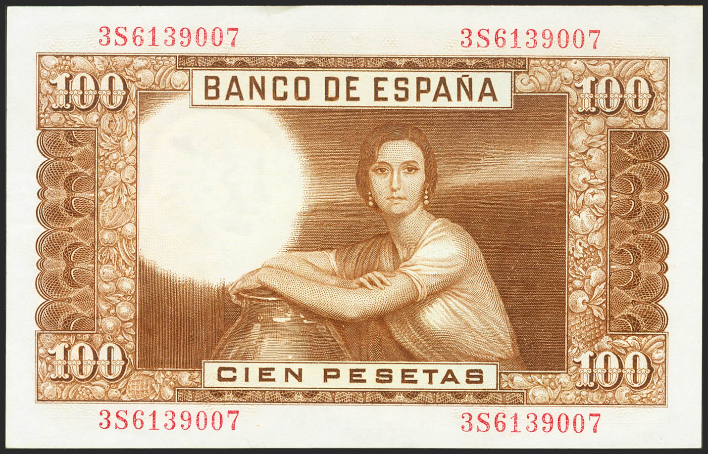 100 Pesetas. 7 de Abril de 1953. Serie 3S. (Edifil 2021: 464c). Conserva todo su apresto original. EBC+.