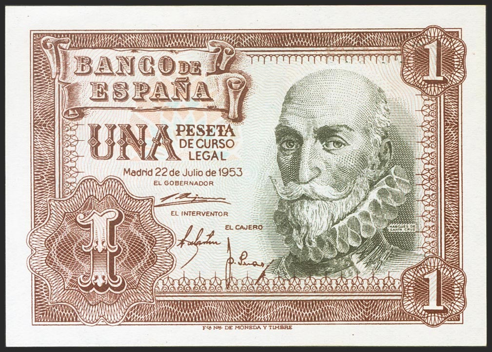 1 Peseta. 22 de Julio de 1953. Sin serie. (Edifil 2021: 465). Apresto original. SC-.