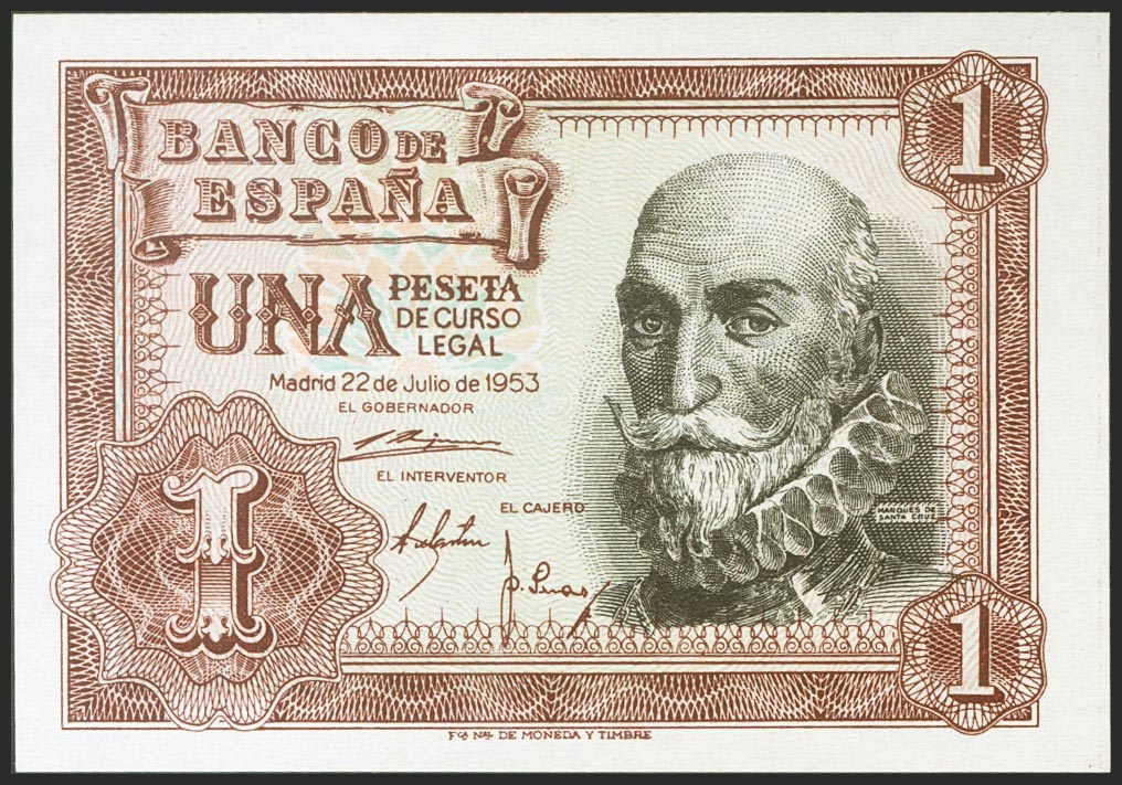 1 Peseta. 22 de Julio de 1953. Serie F. (Edifil 2021: 465a). Apresto original. SC.