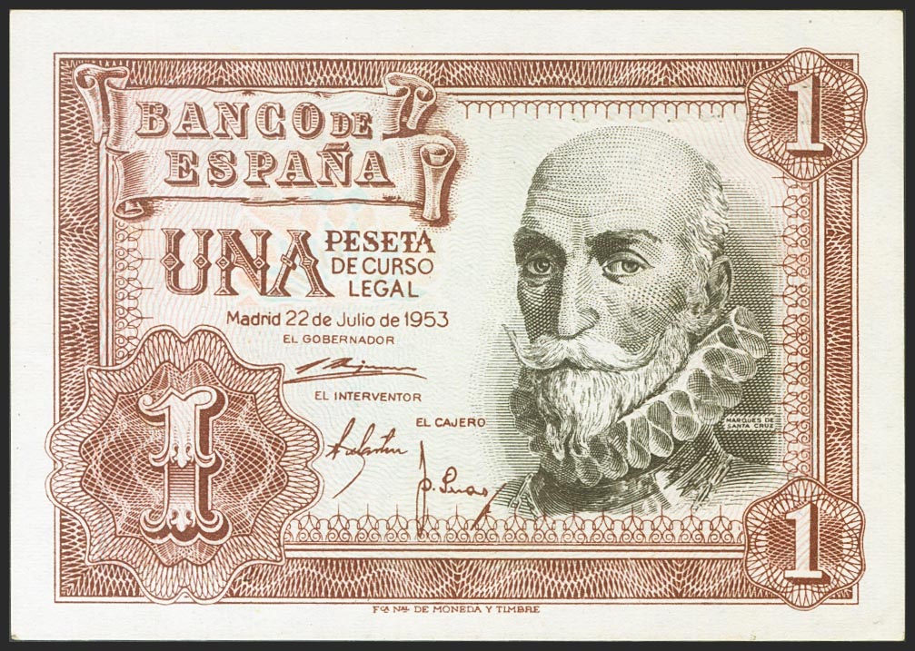 1 Peseta. 22 de Julio de 1953. Serie M. (Edifil 2021: 465a). Apresto original. SC.