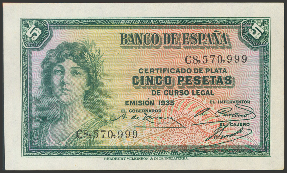 5 Pesetas. 1935. Certificado de Plata. Serie C. (Edifil 2017: 363a). SC.