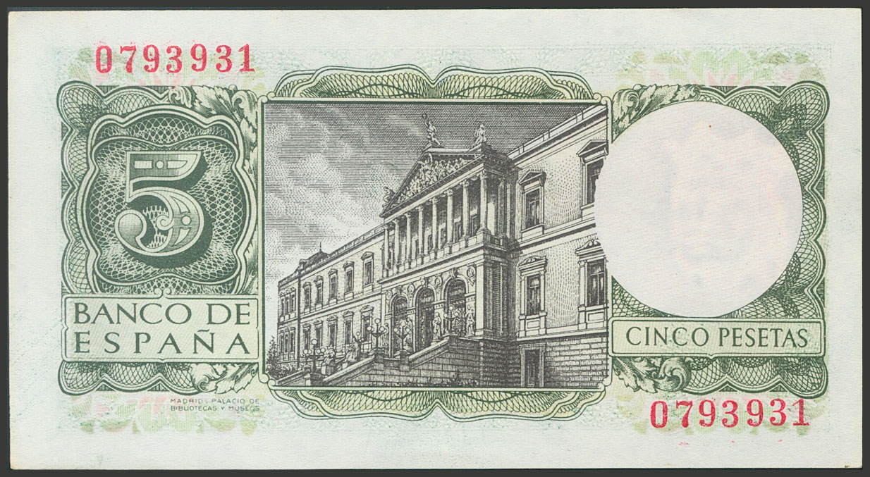 5 Pesetas. 22 de Julio de 1954. Sin serie. (Edifil 2017: 466). Conserva todo su apresto original. SC-.