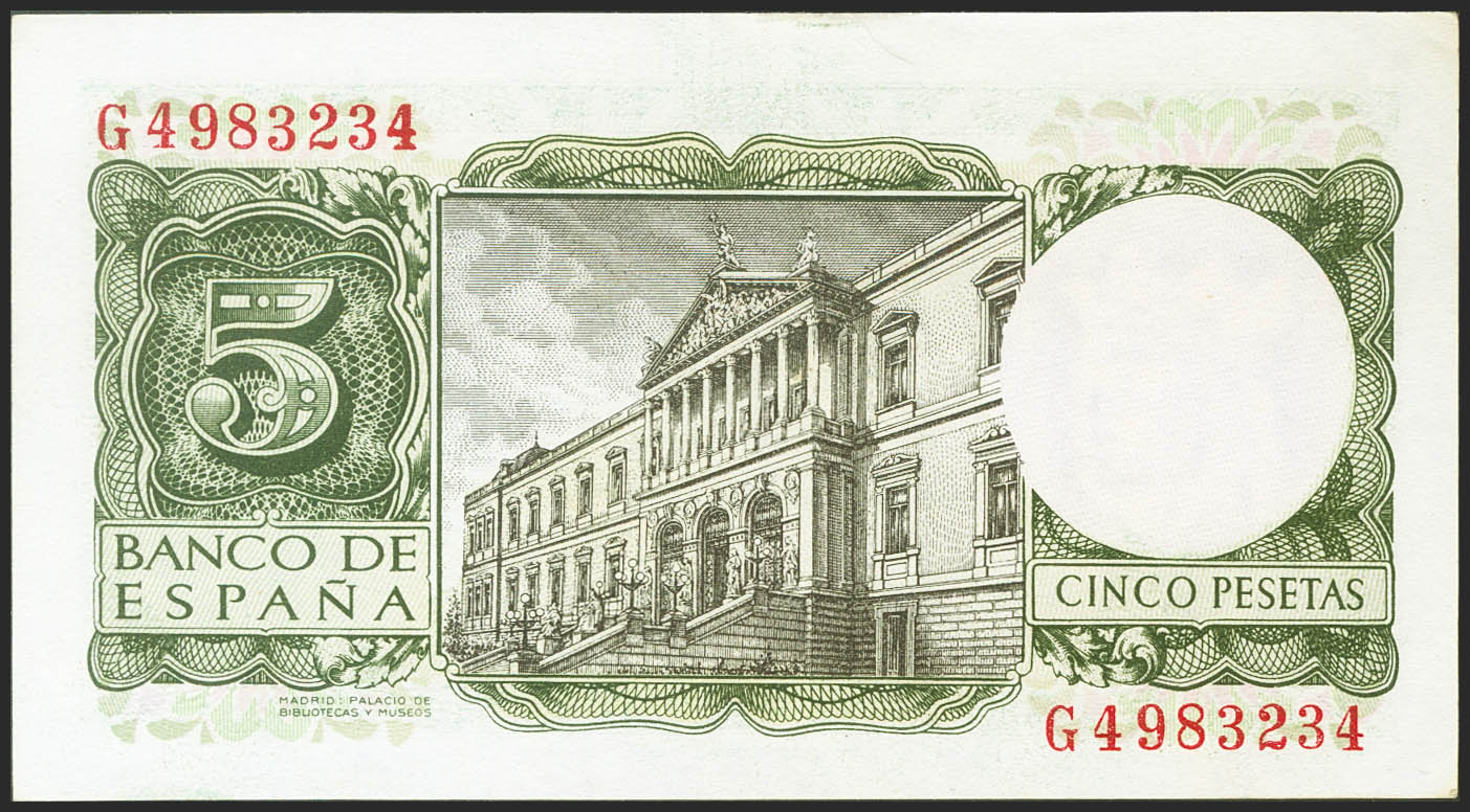 5 Pesetas. 22 de Julio de 1954. Serie G. (Edifil 2021: 466a). Conserva gran parte de su apresto original. EBC+.