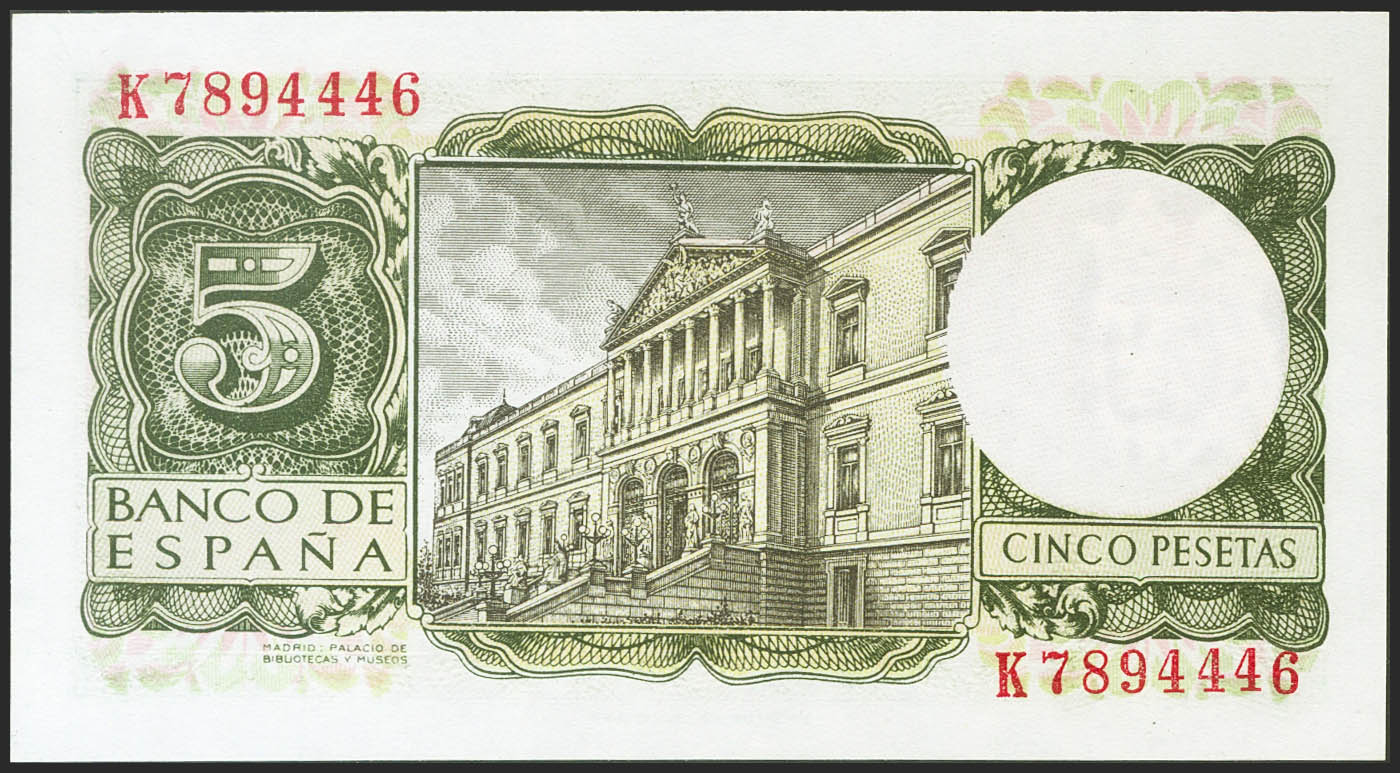 5 Pesetas. 22 de Julio de 1954. Serie K. (Edifil 2021: 466a). Apresto original. SC.