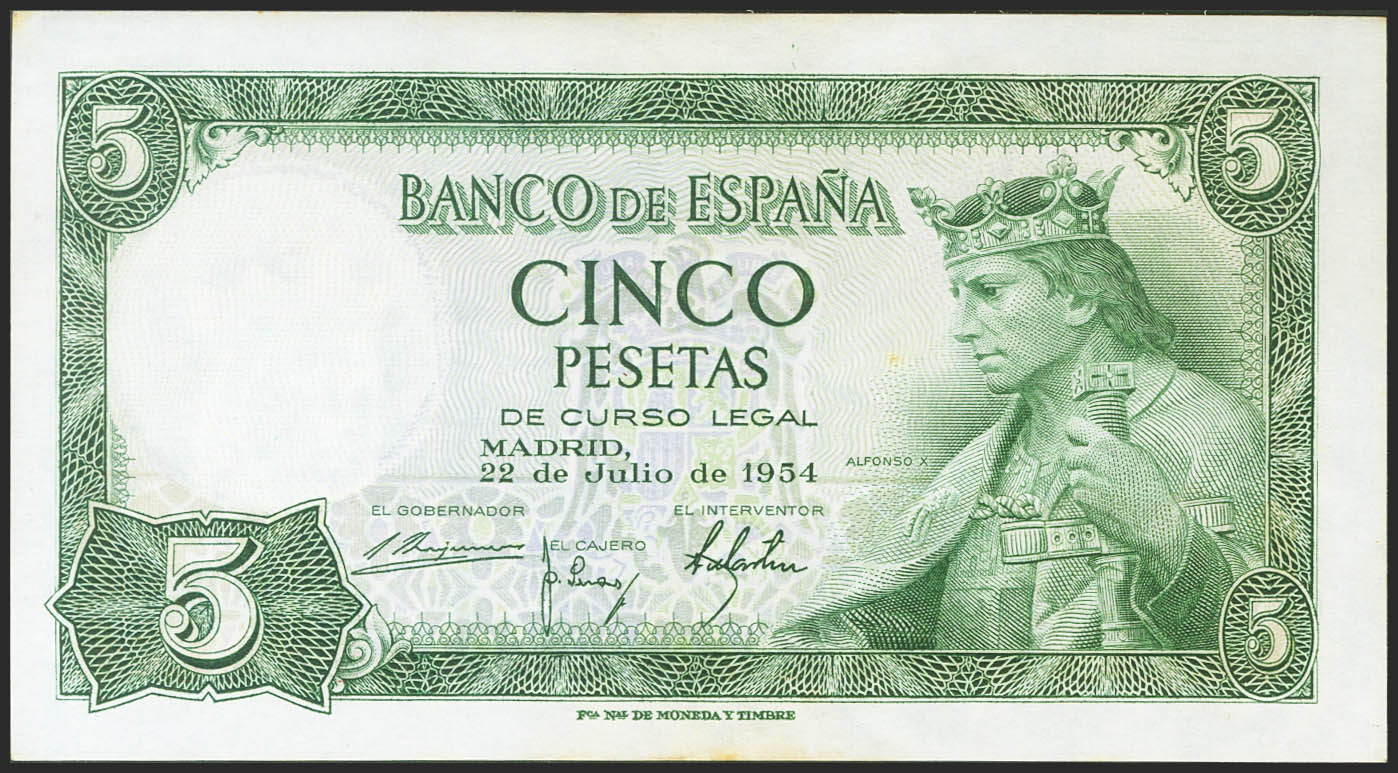 5 Pesetas. 22 de Julio de 1954. Serie Q. (Edifil 2021: 466a). Conserva gran parte de su apresto original. EBC++.