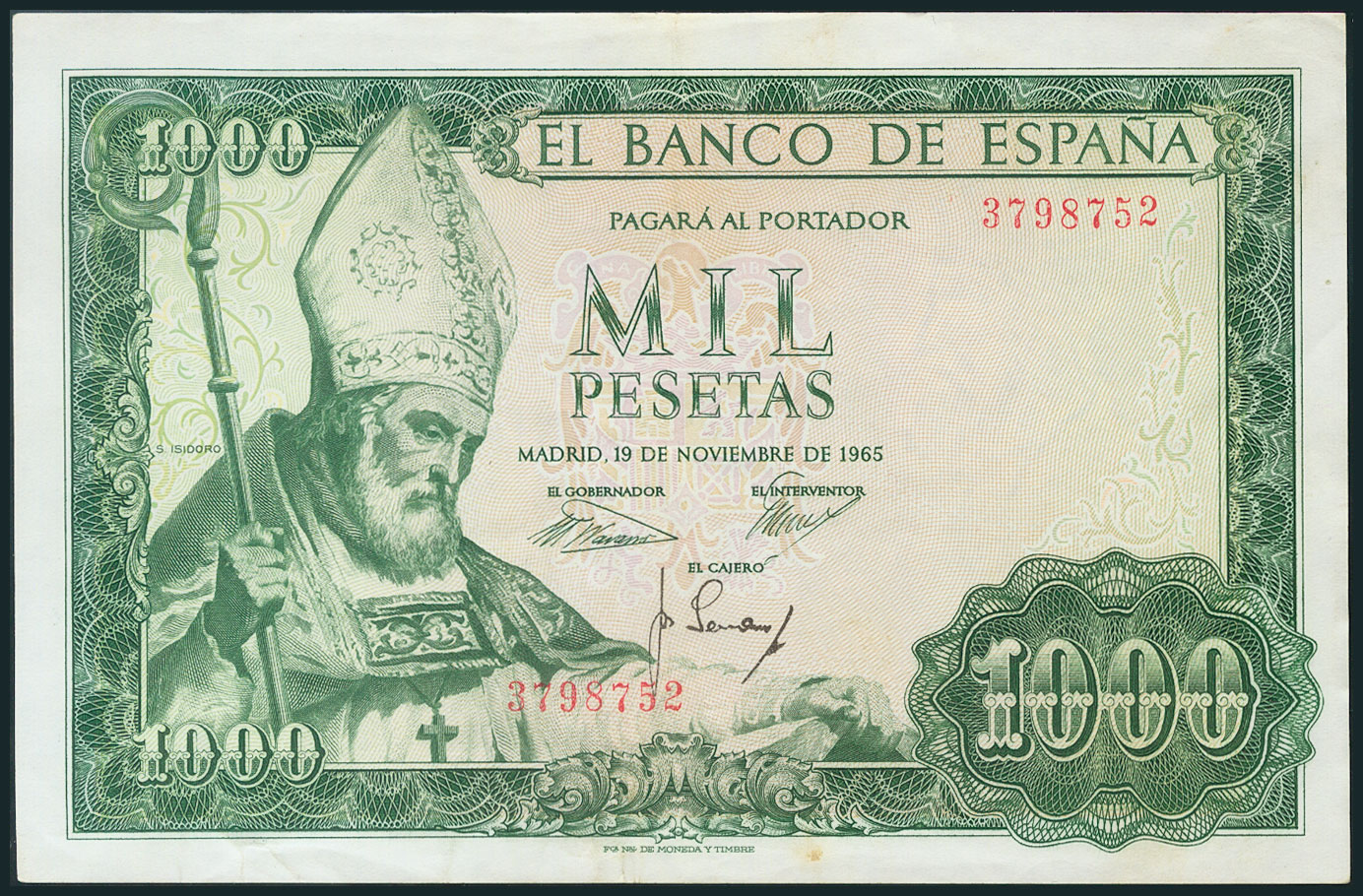 1000 Pesetas. 19 de Noviembre de 1965. Sin serie. (Edifil 2017: 471). MBC.