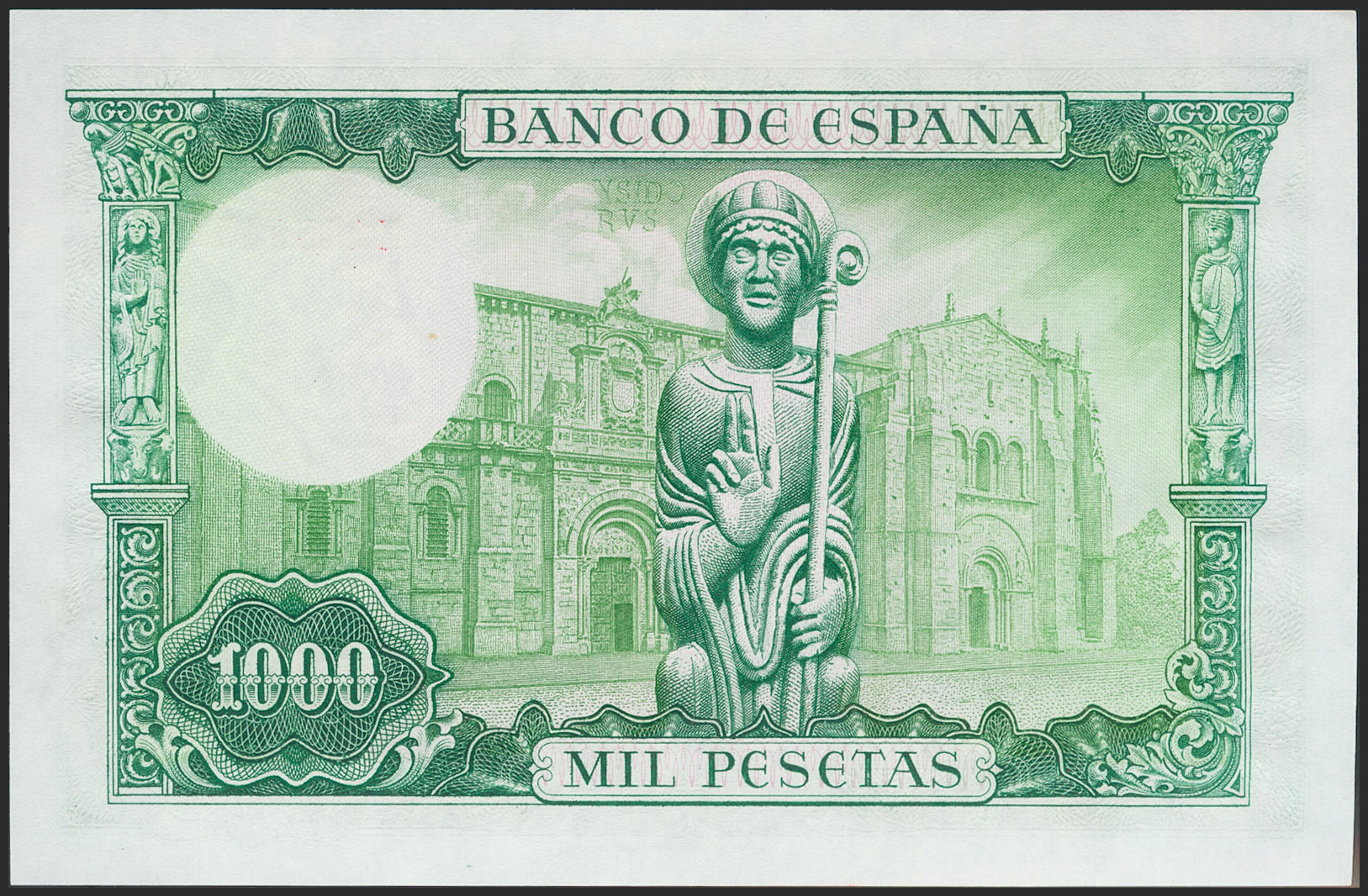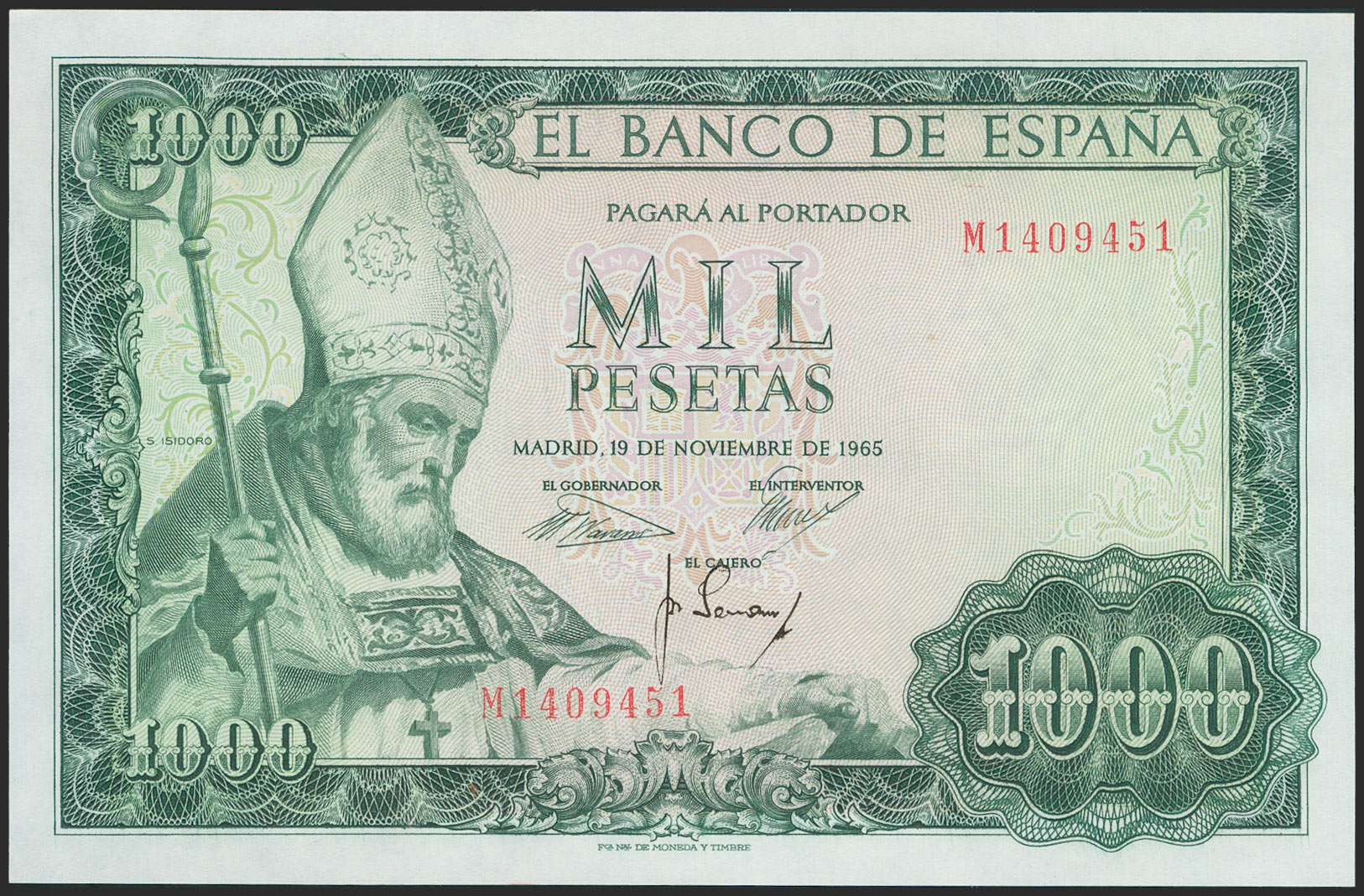 1000 Pesetas. 19 de Noviembre de 1965. Serie M. (Edifil 2017: 471b). Apresto original. SC.
