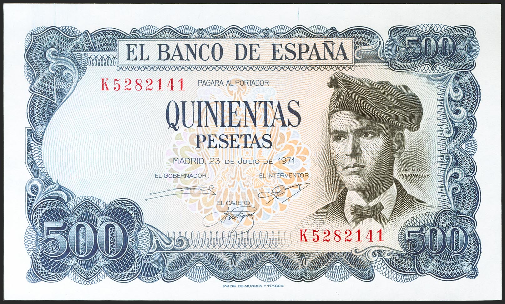 500 Pesetas. 23 de Julio de 1971. Serie K. (Edifil 2021: 473a). Conserva todo su apresto original. SC.