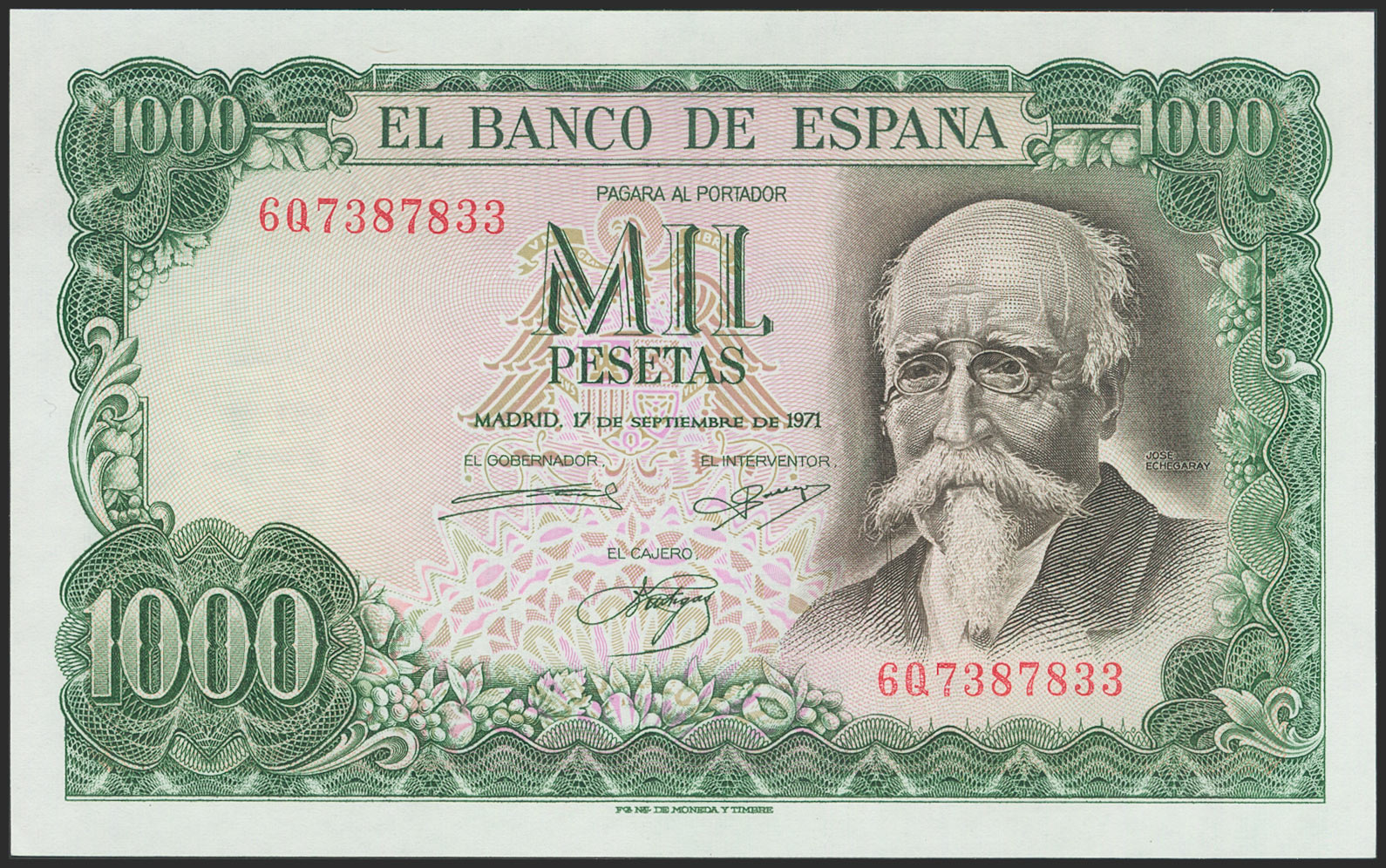 1000 Pesetas. 17 de Septiembre de 1971. Serie 6Q. (Edifil 2021: 474c). Apresto original. SC.