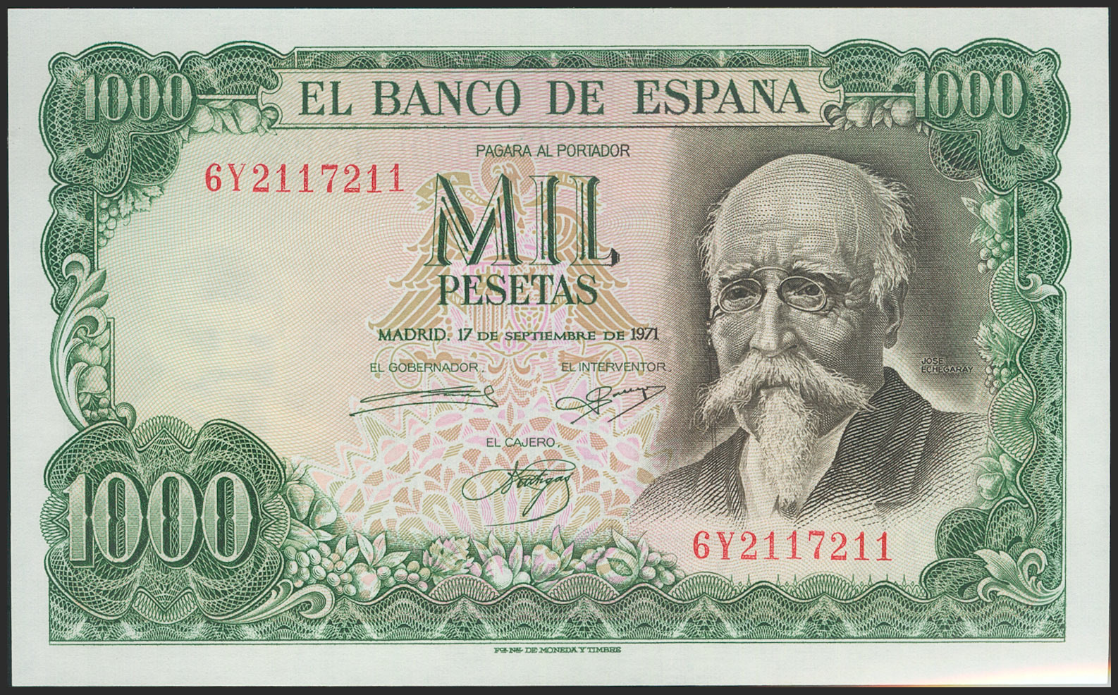 1000 Pesetas. 17 de Septiembre de 1971. Serie 6Y. (Edifil 2021: 474c). Apresto original. SC.