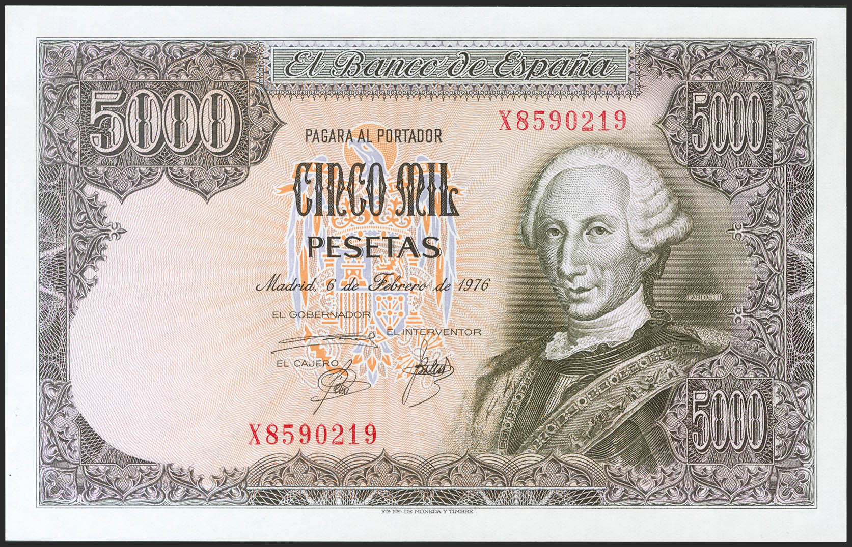 5000 Pesetas. 6 de Febrero de 1976. Serie X. (Edifil 2021: 475a). Apresto original. SC.