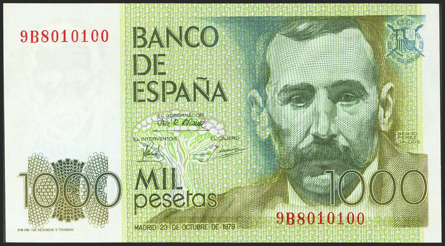 1000 Pesetas. 23 de Octubre de 1979. Serie especial 9B. (Edifil 2017: 477b). Inusual. SC.