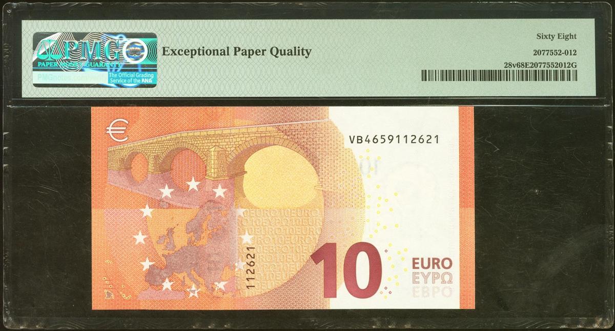 10 Euros. 23 de Septiembre de 2014. Firma Lagarde. Serie V (España). (Edifil 2021: 494A, Pick: 28v). SC. Encapsulado PMG68EPQ.