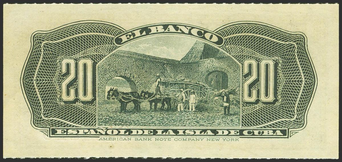 BANCO ESPAÑOL DE LA ISLA DE CUBA. 20 Centavos. 15 de Febrero de 1897. Serie I. (Edifil 2021: 85). Apresto original. SC.