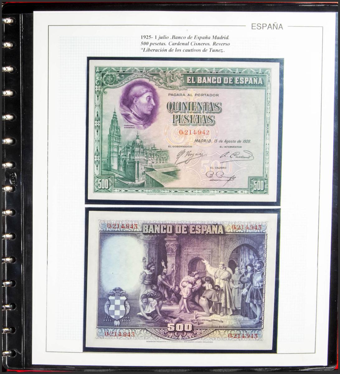 Colección incluyendo más de 75 billetes del banco de España desde el reinado de Alfonso XIII hasta el de Juan Carlos I, con un gran número de billetes en calidades muy altas, además de alguna interesante pareja correlativa. A EXAMINAR.