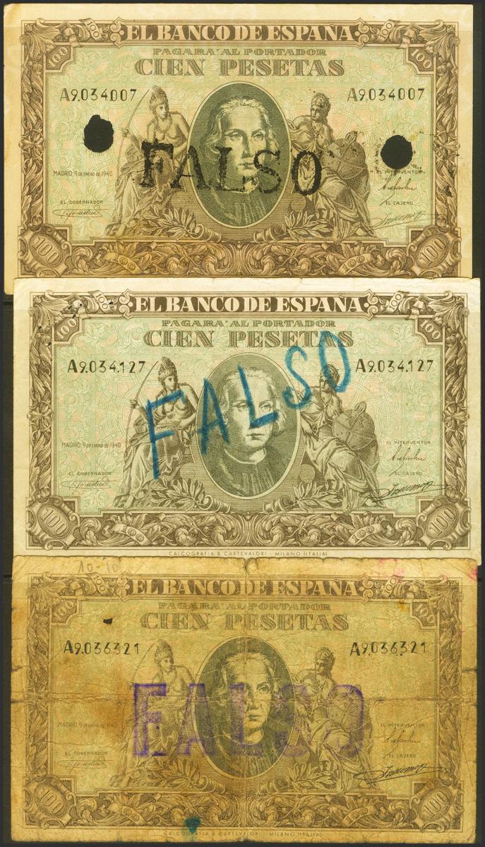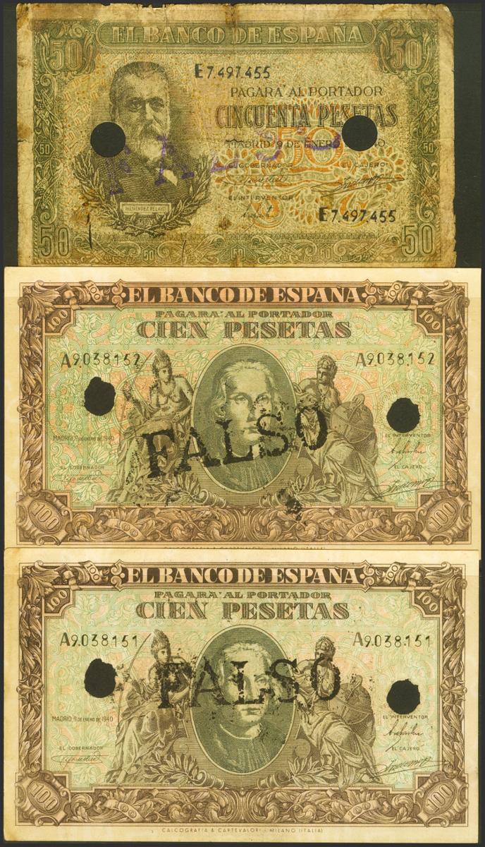 Precioso e interesantísimo inicio de colección especializada de billetes Falsos de Epoca del Banco de España, que abarca desde el año 1936 hasta 1992, de algunos billetes se presentan diferentes tipos, también encontramos altas denominaciones, algunos identificados administrativamente y señalados convenientemente, sin duda se trata de un conjunto difícil de reunir hoy en día y de un área de coleccionismo muy activa actualmente y con campo por descubrir (diversas calidades, entendemos que en esta especialidad la calidad del billete no es esencial). IMPRESCINDIBLE EXAMINAR.