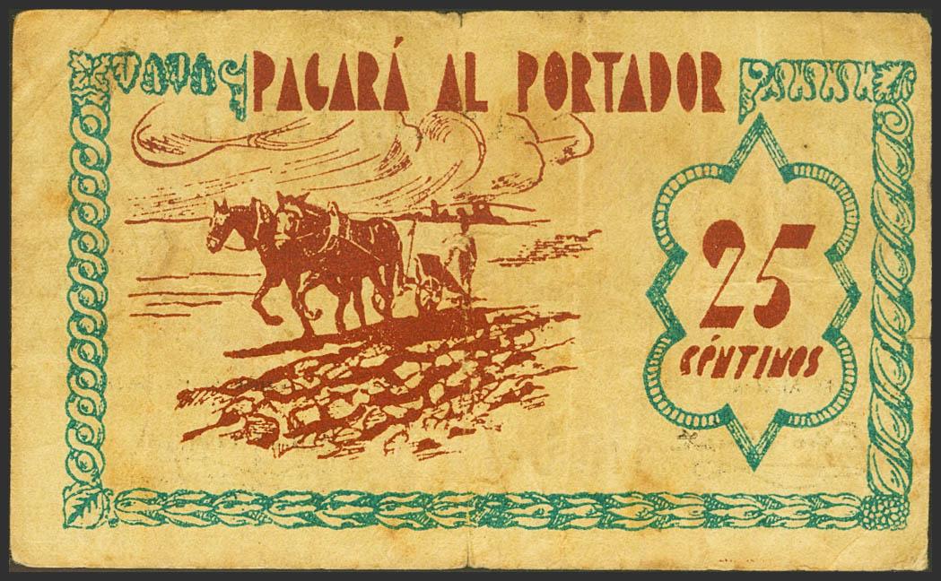 CONSEJO MUNICIPAL DE ALGEMESI (VALENCIA). 25 Céntimos. (1937ca). Serie A. (González: 475). MBC-.