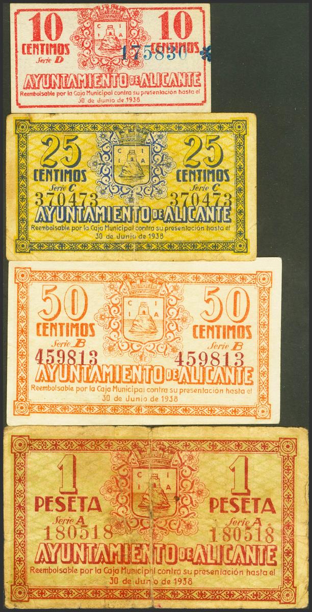ALICANTE. 10 Céntimos, 25 Céntimos, 50 Céntimos y 1 Peseta. Series D, C, B y A, respectivamente. (González: 507/10). Serie completa. EBC-/BC+.