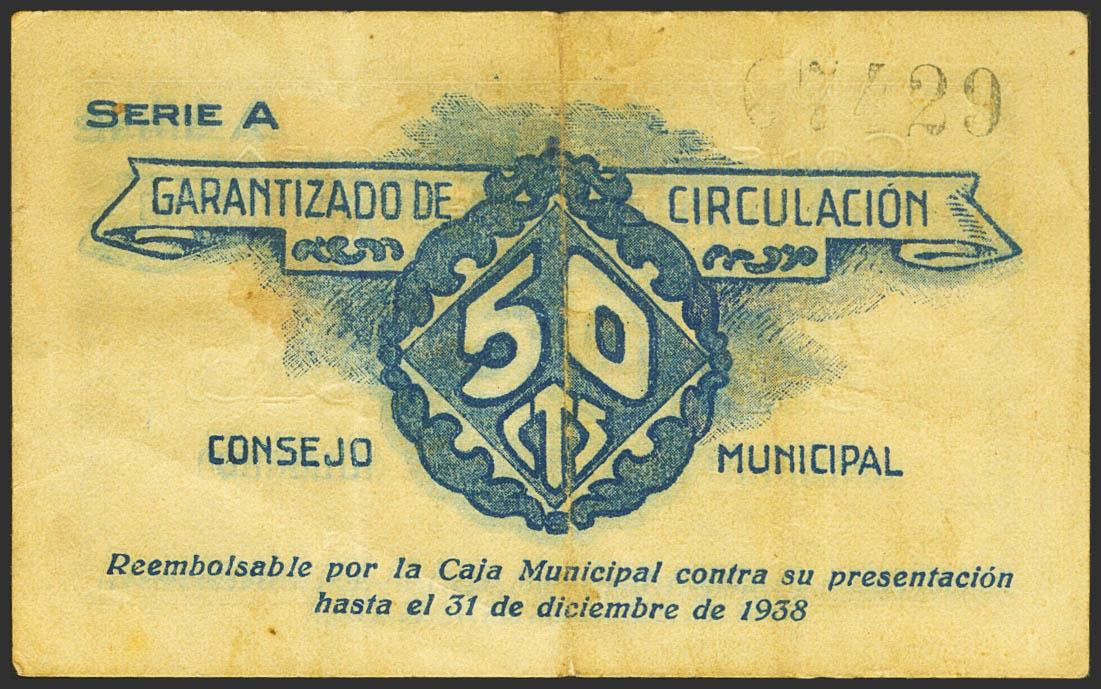 BURJASOT (VALENCIA). 50 Céntimos. 11 de Octubre de 1937. Serie A. (González: 1329). Inusual. MBC+.