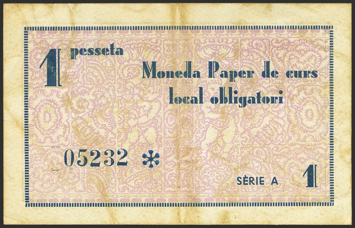 BESALU (GERONA). 1 Peseta. 10 de Abril de 1937. Serie A. (González: 7044). EBC-.